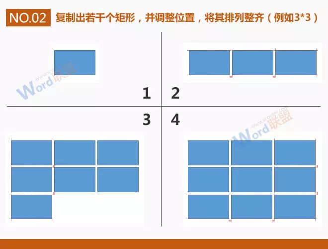 2、复制出九个矩形,并将其按照3行3列的格式排列整齐。大家也可以按照自己的意愿改变矩形的个数和排列效果。