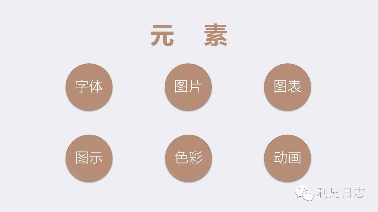 从单页PPT的组成元素上来说,PPT通常是由字体,图片,图表,图示,色彩和动画六个部分构成。而排版,就相当于英语的语法,将这些元素很好的融合在一起。
