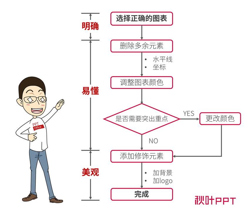 其实制作一张合格的 PPT 图表,只需要记住这三个关键词原则——明确、易读、美观!