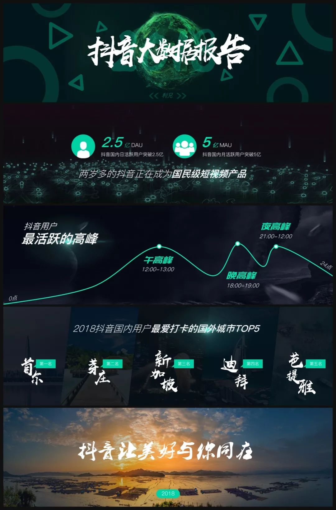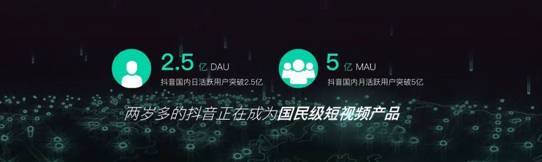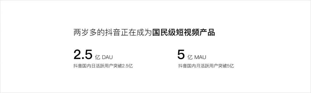 这一页主要通过数据展现抖音已经成为了国民短视频产品了,其中的数字是重点要表现的。