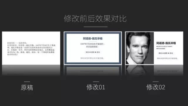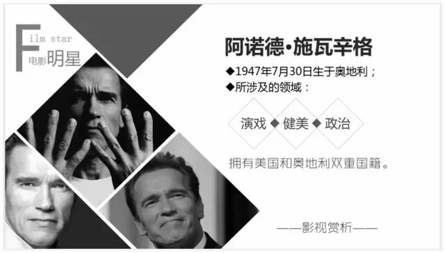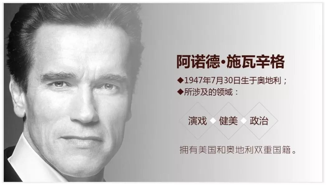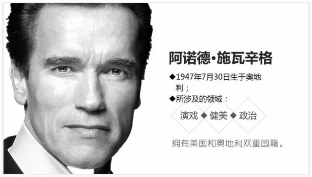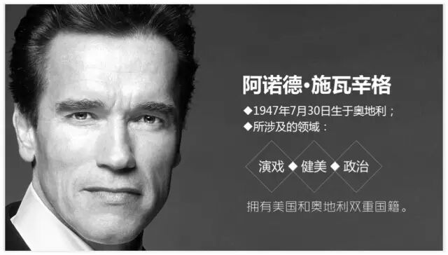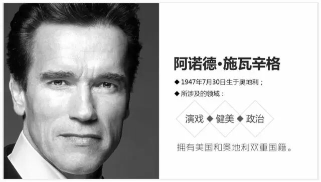 因此,我们可以给这页PPT添加一张图片,比如施瓦辛格的照片。再根据页面中图文的特点,重新布局,效果如下: