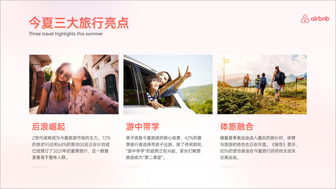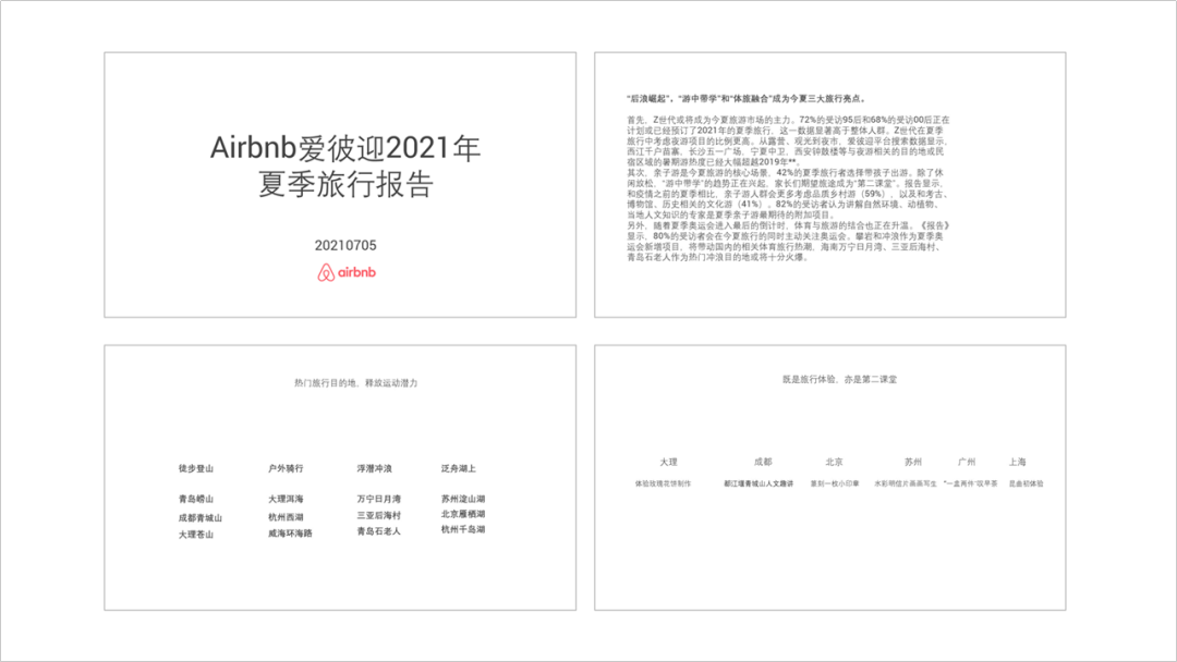 这是爱彼迎的一份旅行报告,所以色调和风格就比较好定了。