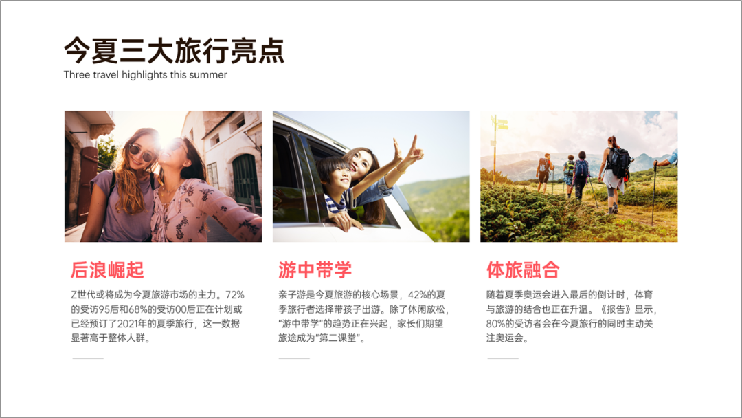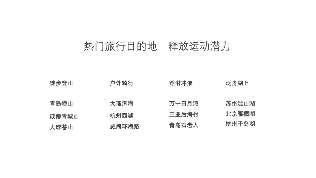 当然,这里为了更加形象,我们也需要找一些高质量的相关配图,比如登山、骑行、浮潜、泛舟等。