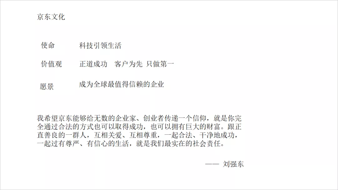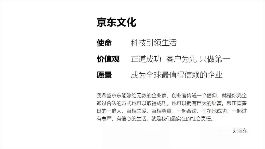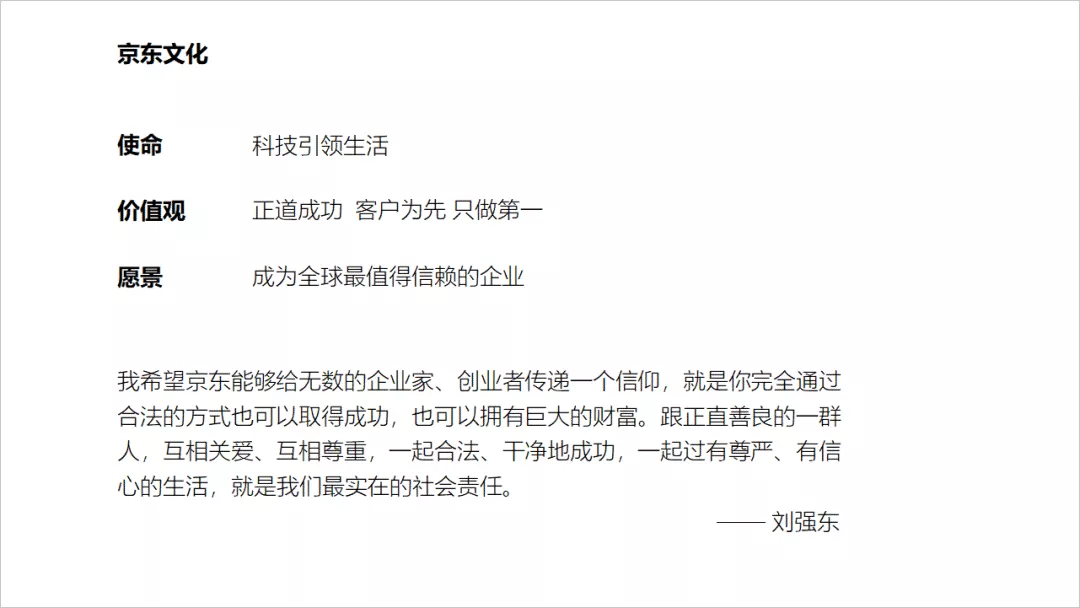 ❷ 然后把「京东文化、使命、价值观、愿景」等关键词加粗,调整文本的层次感;