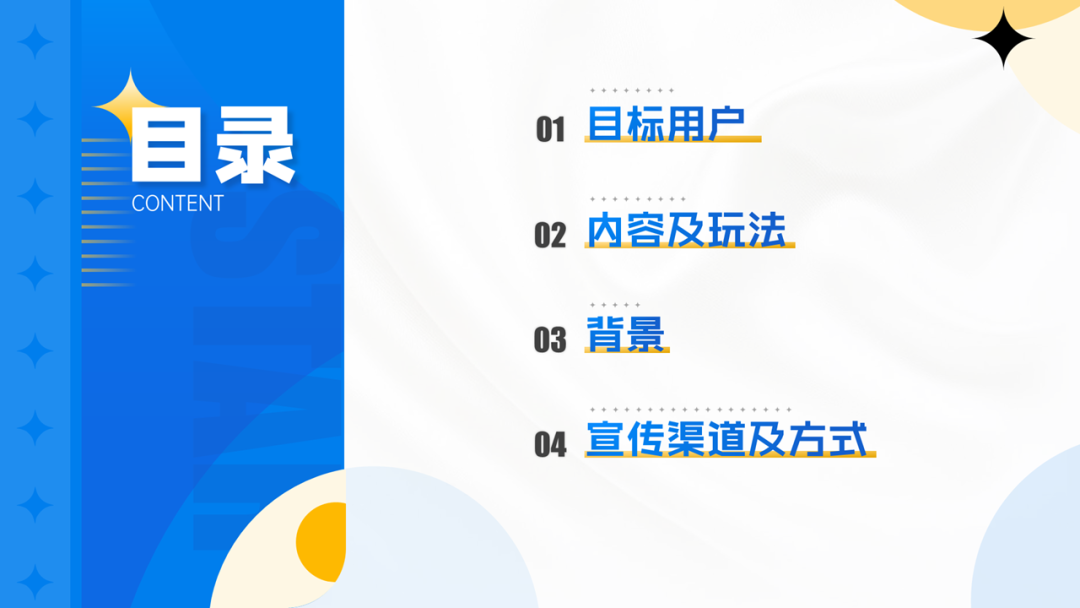 目录这一块层次感不强,页面中的黄色占比太低,整体看上去蓝色太多。