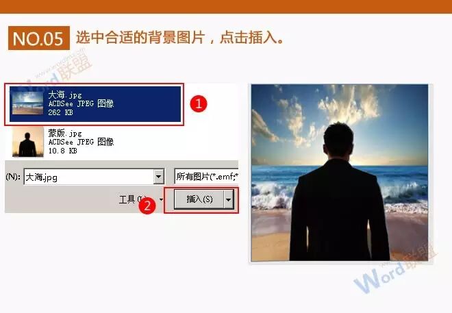 5、选中合适的背景图片,点击插入,下面图片的背景将会怎样呢?