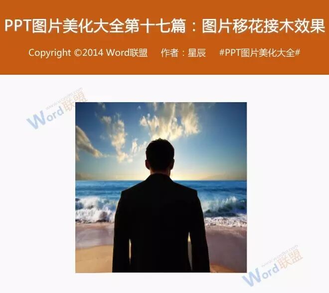 有许多PPT高手,经常利用ps做出许多精美图片,若你不会ps且不知如何使用ppt做出类似ps蒙片式移花接木效果的话,那你今天算是走运了。星辰老师讲解的图片移花接木效果教程会让你操作起来很简单的。