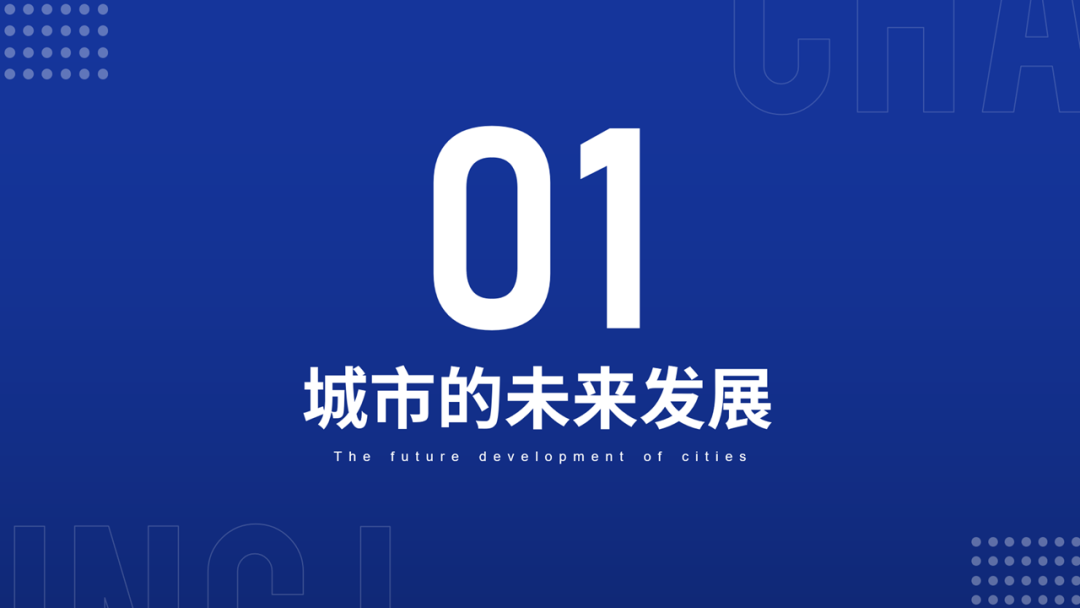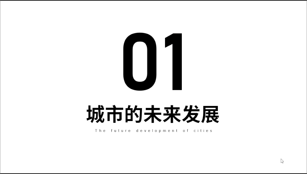 首先,这张PPT过渡页,我们可以将它的文案进行处理,把数字放大并加粗文案。这样处理能让文案更加醒目。