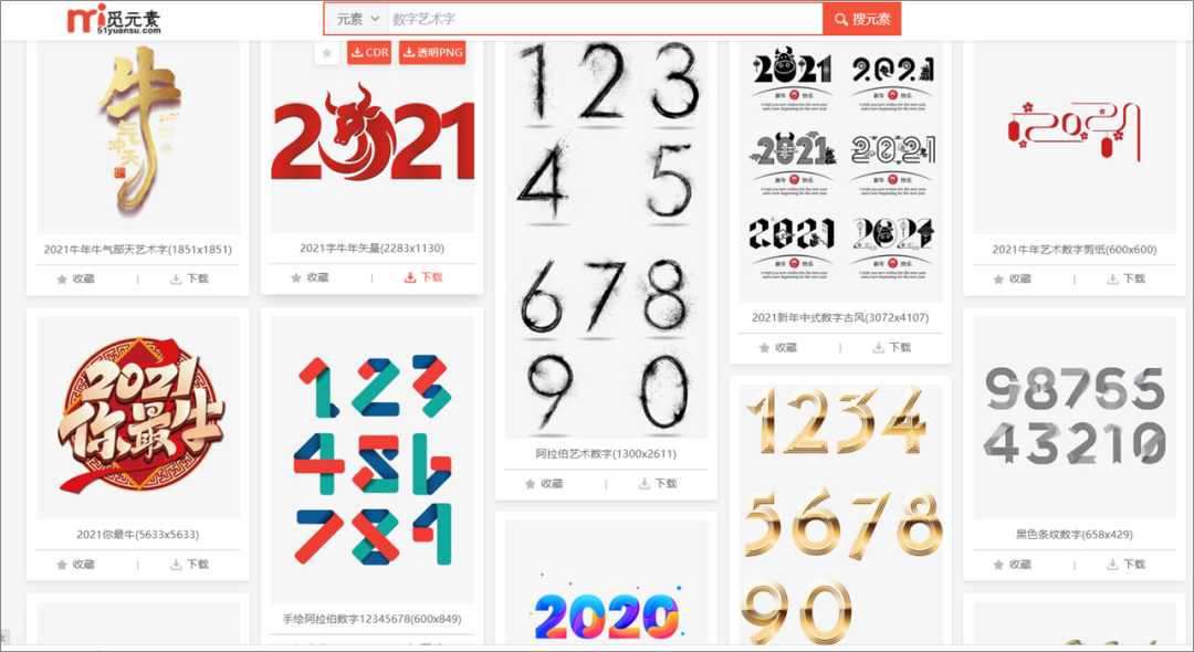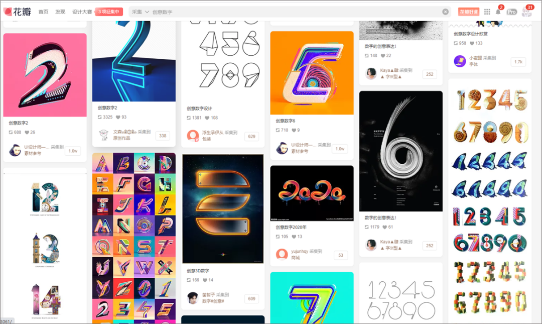 如果觉得这个数字不够好看,我们可以去花瓣网找一些好看点的艺术字。