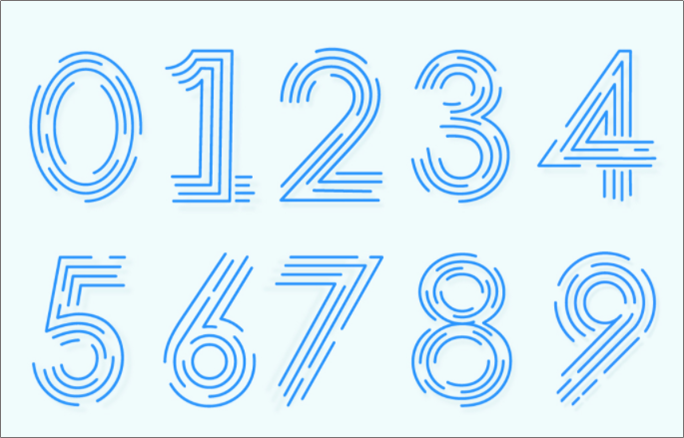 我这也用了两个比较有创意的字体“Paralines”和“POLYA Regular”,将数字01更改成这两个字体,效果就变成这样了。