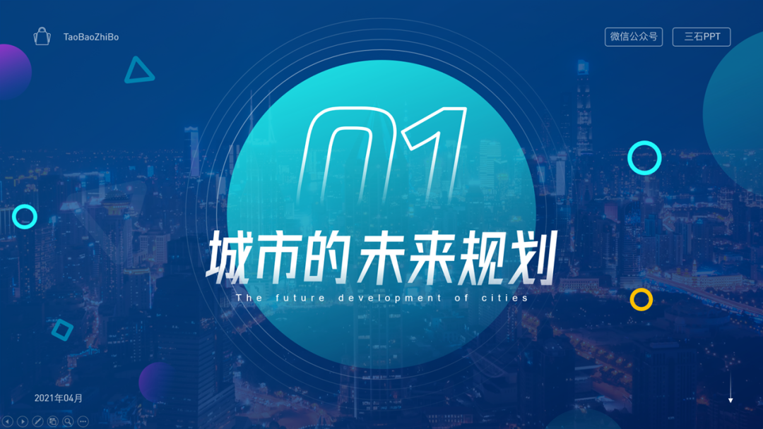 最后,在PPT的周围加上一些透明的圆弧,这样一张简单的PPT过渡页就制作完成了。