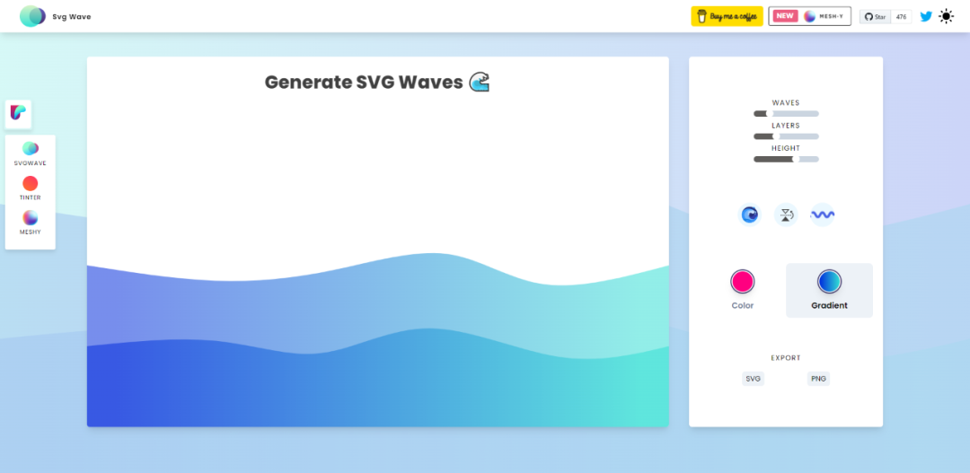 除此之外,在左侧还有个小按钮,可以跳转到其他在线工具,比如矢量波浪背景生成工具: