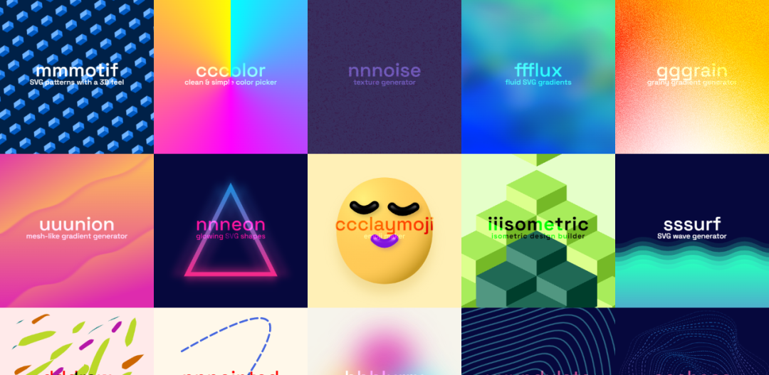 你可以把它看成是各种抽象背景的大合集,不仅有网格渐变,还有各种各样不太常见的背景效果。