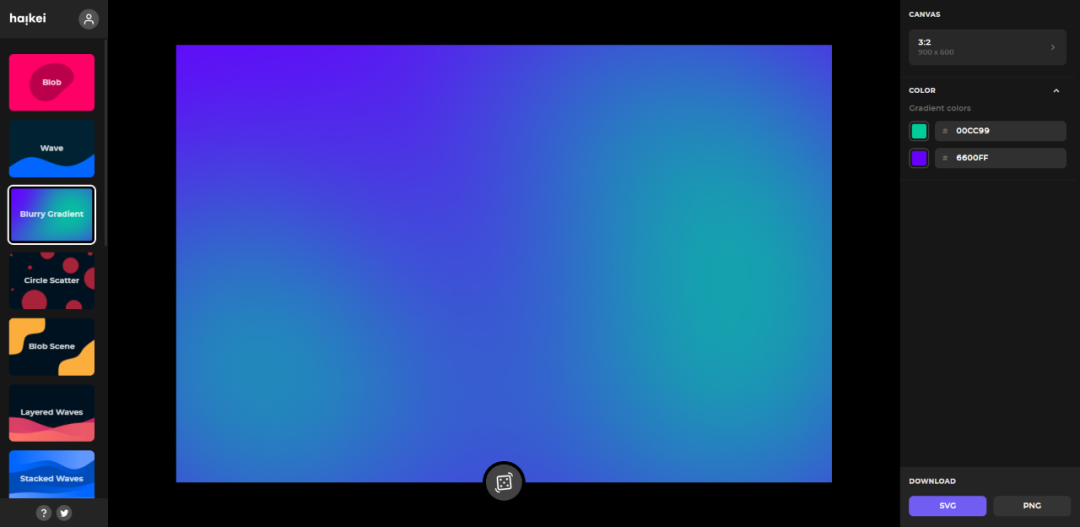 这同样是一个在线背景生成器合集,左侧导航可以直接切换不同的生成器,比如波浪、不规则图形或者模糊背景。