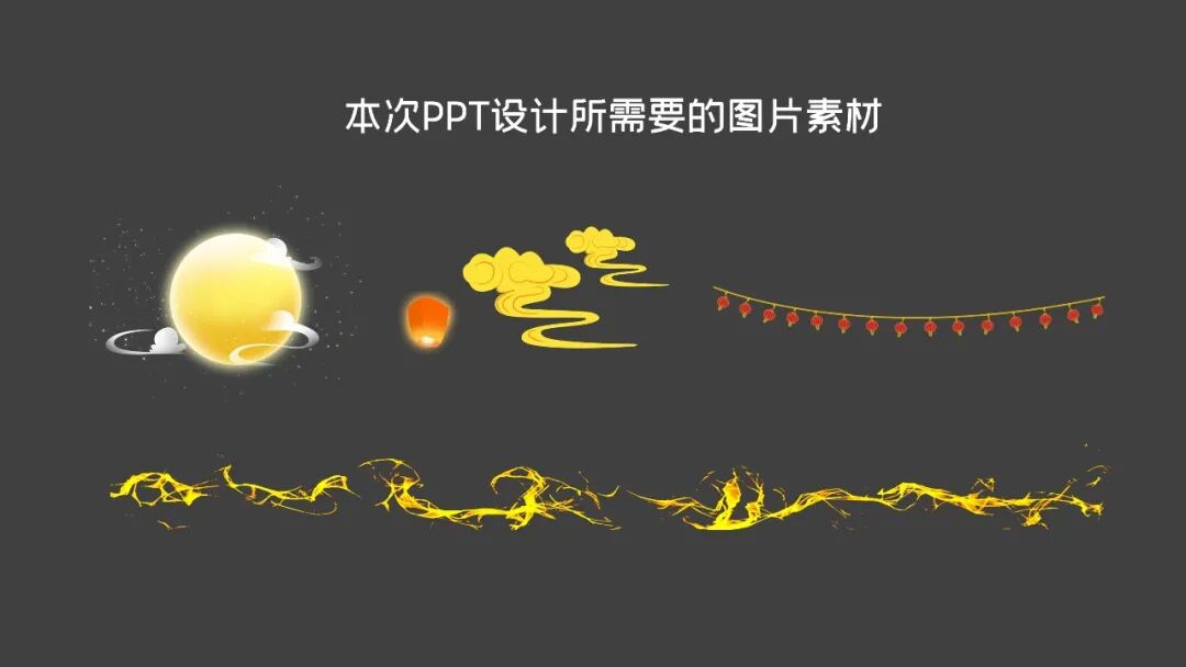 接着将文案放在制作好的PPT背景上,再添加一个灯笼的装饰元素,整体就设计好了。