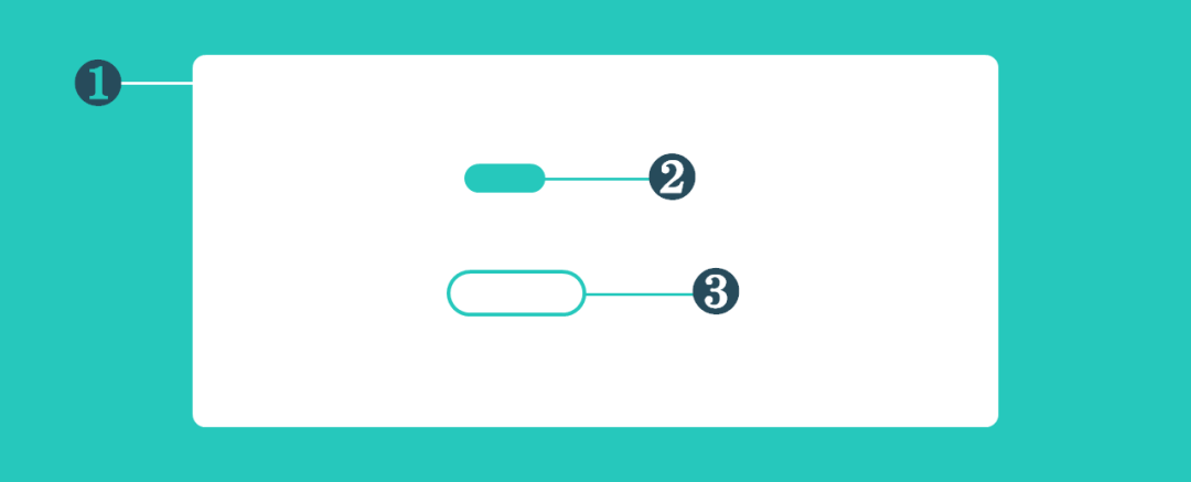 第一个例子中,我们会用到以下 3 种「圆角矩形」:❶ 号矩形用作主体背景,❷、❸ 号矩形用作部分元素的背景: