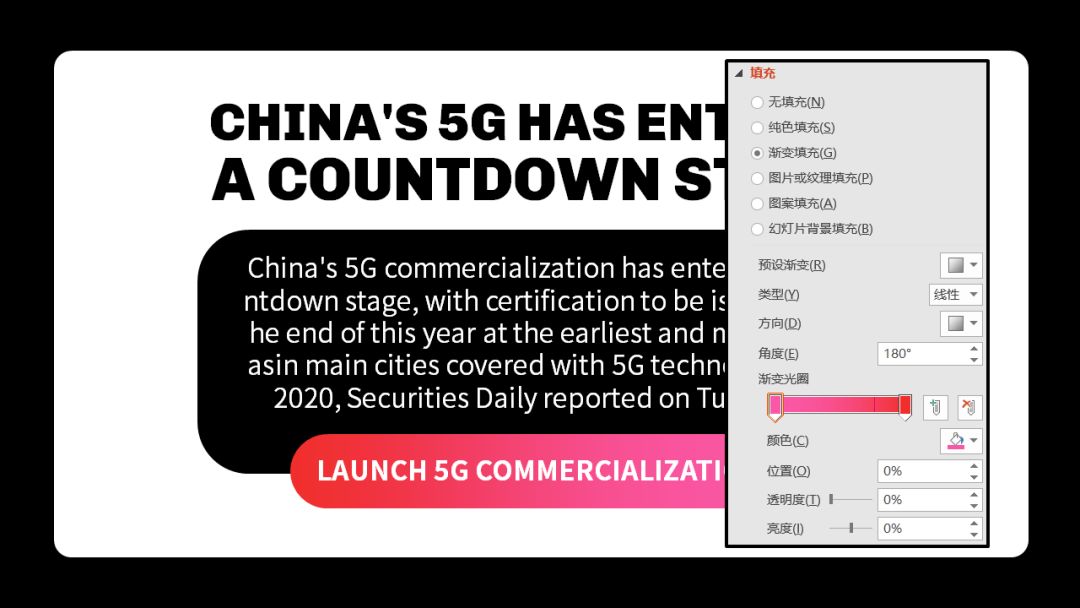 可以看到,这里的红色矩形就设置了「渐变填充」,具体操作是:选中你的圆角矩形——单击【右键】——选择【设置形状格式】——在【填充】中设置【渐变填充】就好啦: