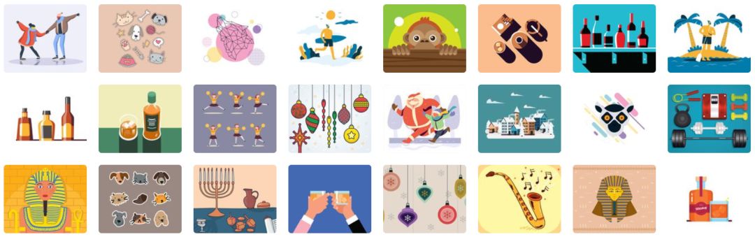 这个网站里全是矢量图形,下载后用 AI 打开,编辑形状、修改颜色啥的都不在话下,而且风格种类超级超级多!