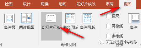 在使用这些模板时,也无需每页都单独处理一次,只需进入“视图“->”幻灯片母板“中: