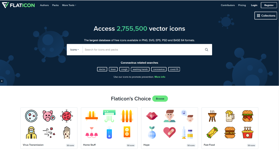 FlatIcon:一个免费的图标网站,图标类别十分丰富,所收录的图标都是扁平化的,较为新潮,且互联网感很强。