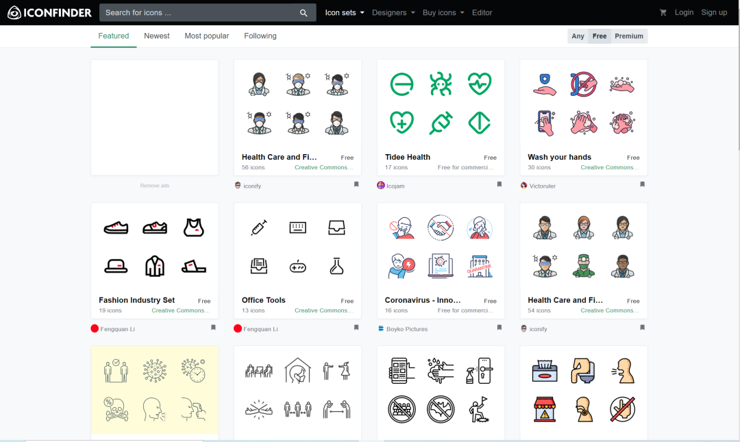 Iconfinder:全世界前几大的免费图标搜索引擎,号称拥有140w的丰富图标素材,其中有收费也有免费。这个网站收录大量丰富的图标,且界面友好、导航清晰。