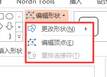 先来看看【编辑形状】,点开【编辑形状】按钮之后,会弹出【更改形状】、【编辑顶点】和【重排连接符】三个选项。