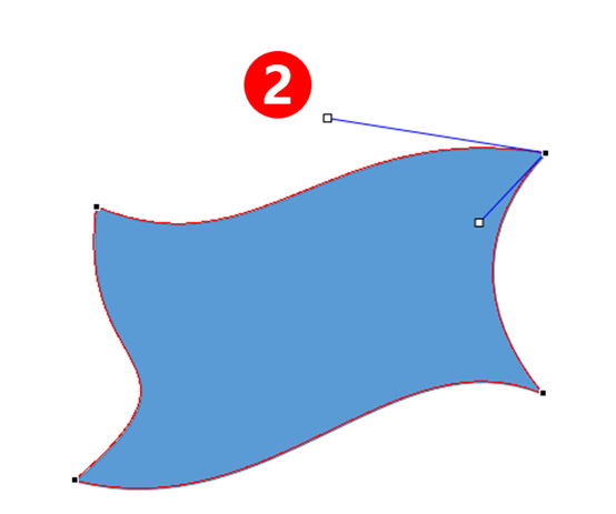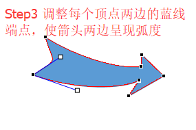 然后,你就可以拖动顶点和蓝线的端点,来调整顶点的位置和线条的角度(蓝线的方向控制角度)及弧度(蓝线的长短控制弧度)。