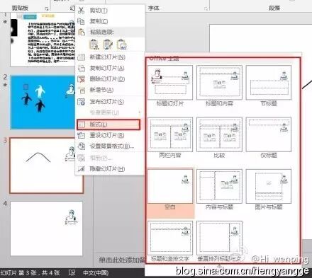 【PPT技巧24】【有关幻灯片母版1】【视图-幻灯片母版】打开模板编辑。在首个页面插入任何东西,所有板式也会出现。而在其他页面编辑,只有相应的板式会有。关闭母版,回到普通页面。右击左边的缩览,选择【板式】,就可以选择你需要的板式了。
