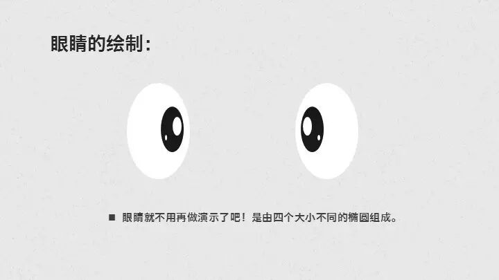 眼睛部分在这个教程中来说是最简单的,使用四个不同大小的椭圆组成,在做的过程中需要注意调节每个椭圆的大小位置,达到最协调的比例就可以。