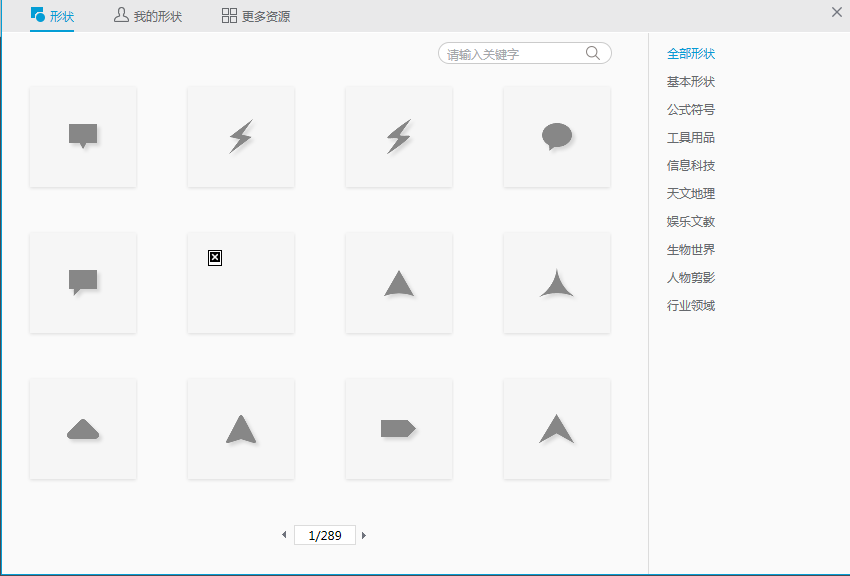 点击“形状”按钮即可出现图标库,里面也有大量的图标可供选择,同时支持修改颜色。