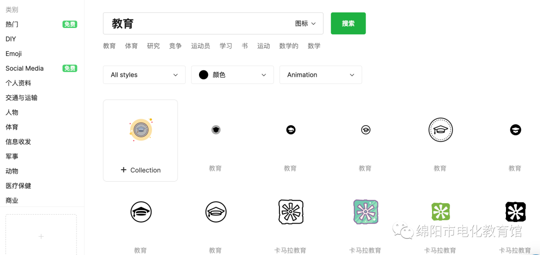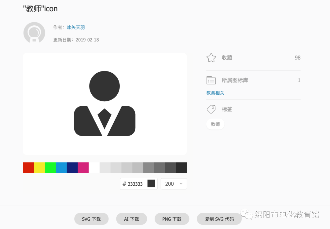 Iconfont-阿里巴巴矢量图标网是一个可以自主改变图标颜色的图标网站,有很多创意的图标。比如:搜索“教师”,会出现多款图标。