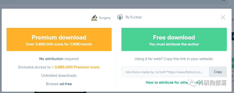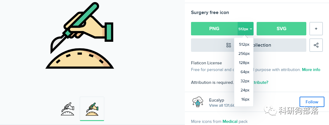 在主页的搜索框内输入你想要的图标的英文名称,如“手术刀”——scalpel。(图标下有皇冠的代表付费)