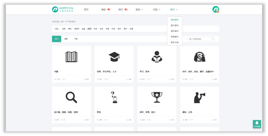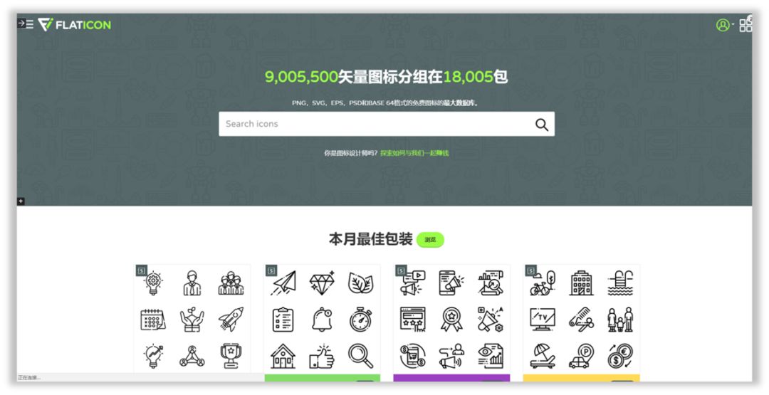 看到首页就能知道这个网站的图标相当的多,且风格非常统一。