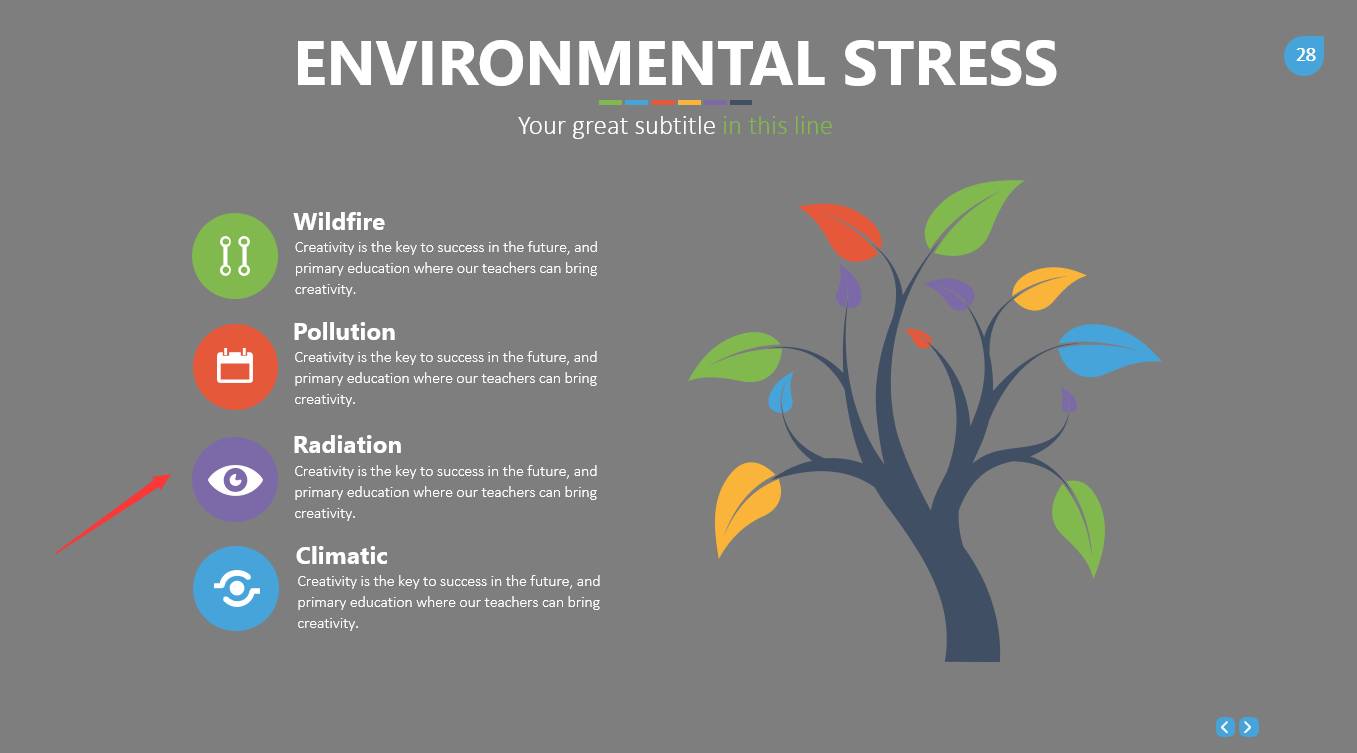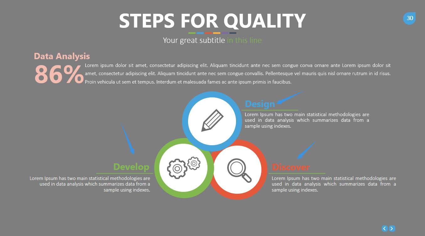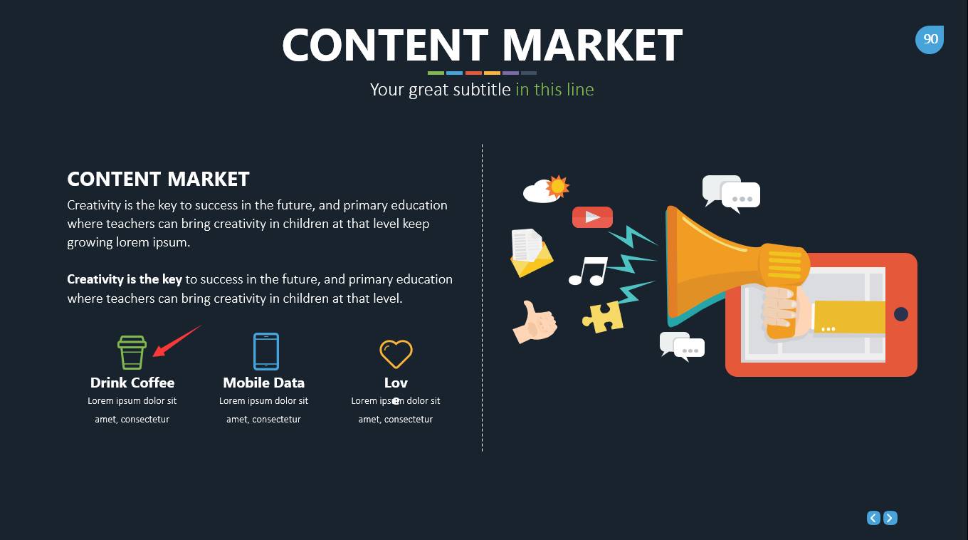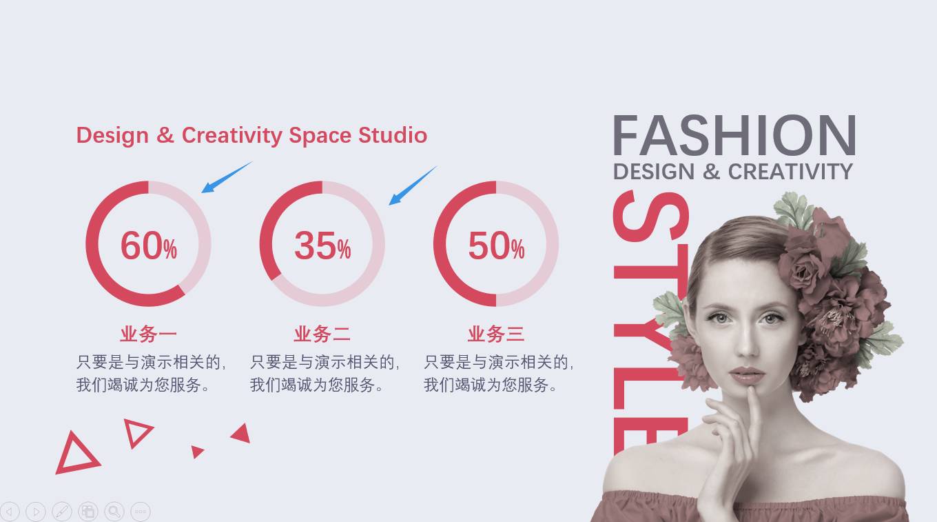 PPT设计:这里我们可以利用一些常规的形状进行简单的组合使用,比如:三角形、圆形、曲线、图表甚至是文字或数字都可以代替图标的作用,这里我们要打破常规,也就是说图标不一定是图片或图形,只要能达到图标运用的目的均可。