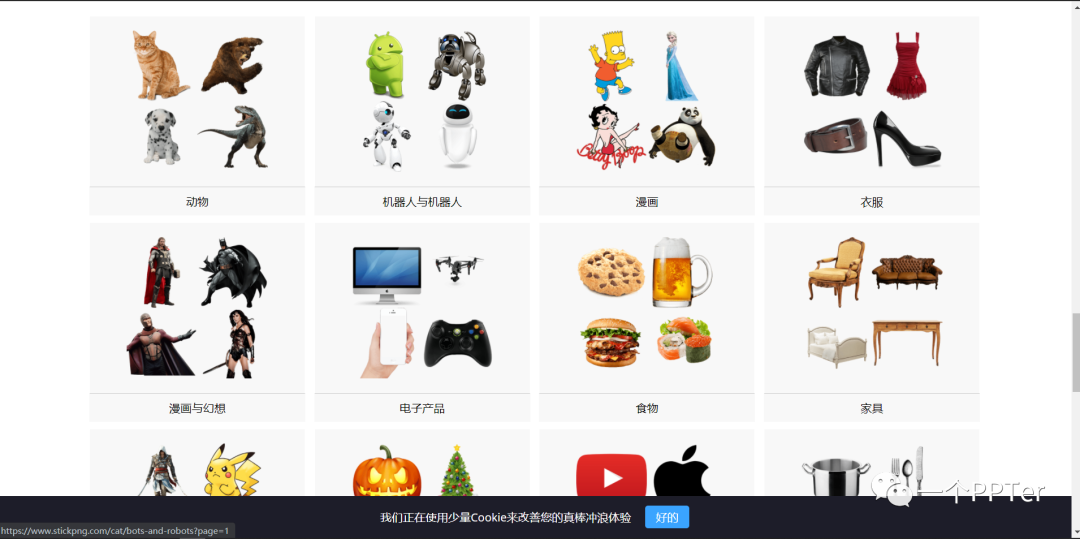 PNG图片是指没有背景的图片,只有某一素材,不需要抠图可以直接使用,这里也有一些网站我经常使用的,例如https://www.stickpng.com/