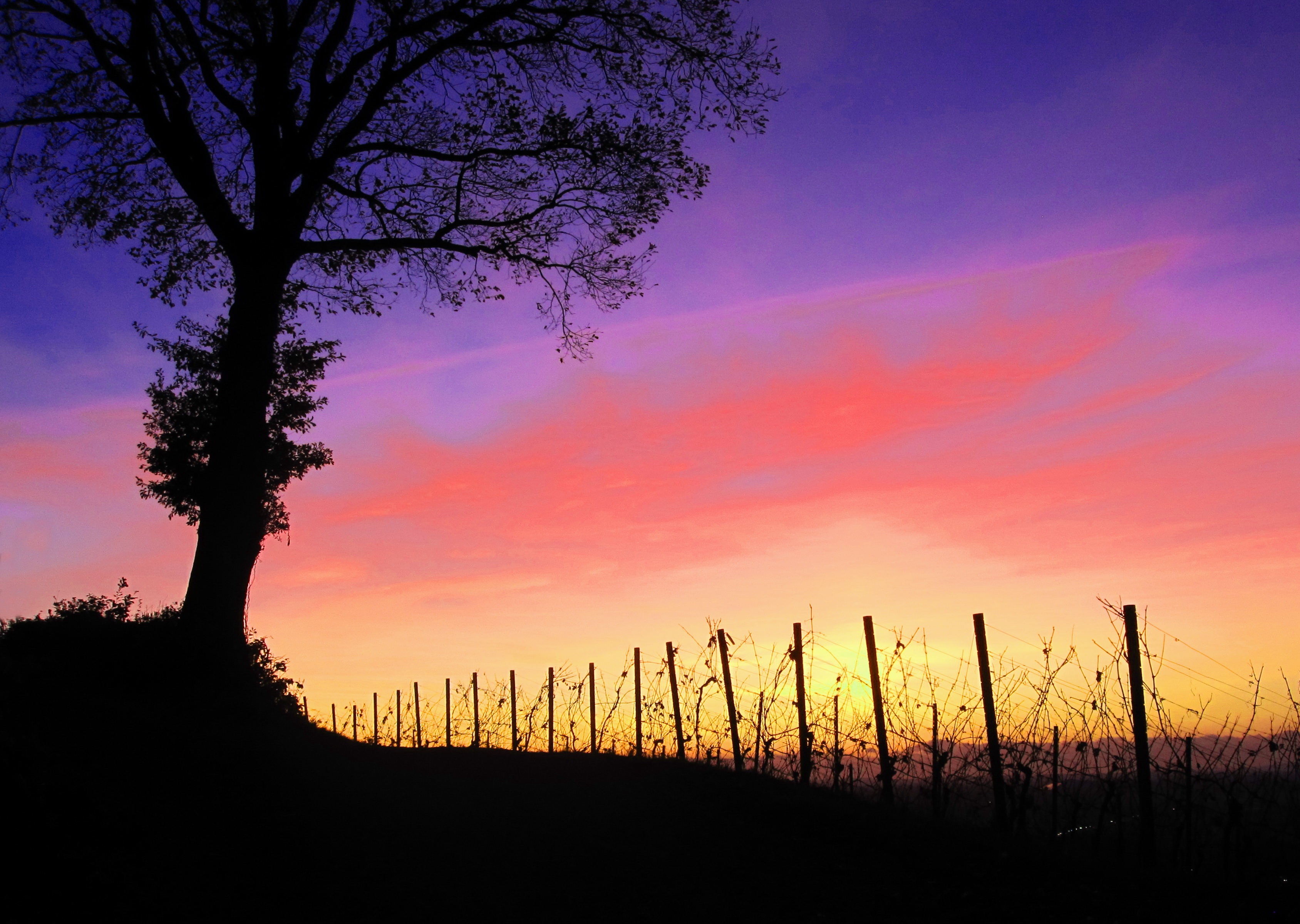 晚安,余辉,葡萄园,葡萄藤,日落,浪漫,abendstimmung
