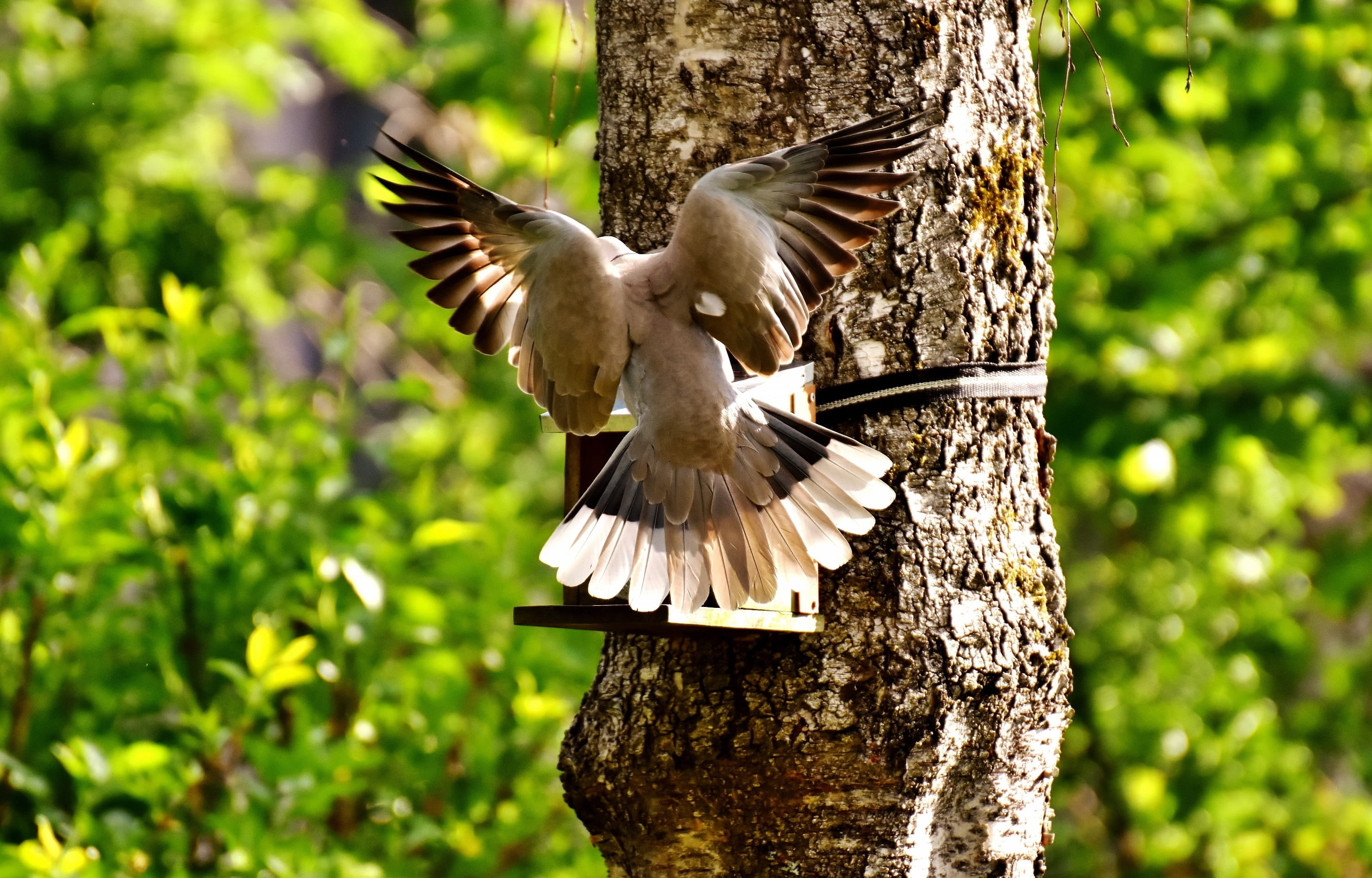 鸽子,方法,鸟,花园,项圈,羽毛,飞