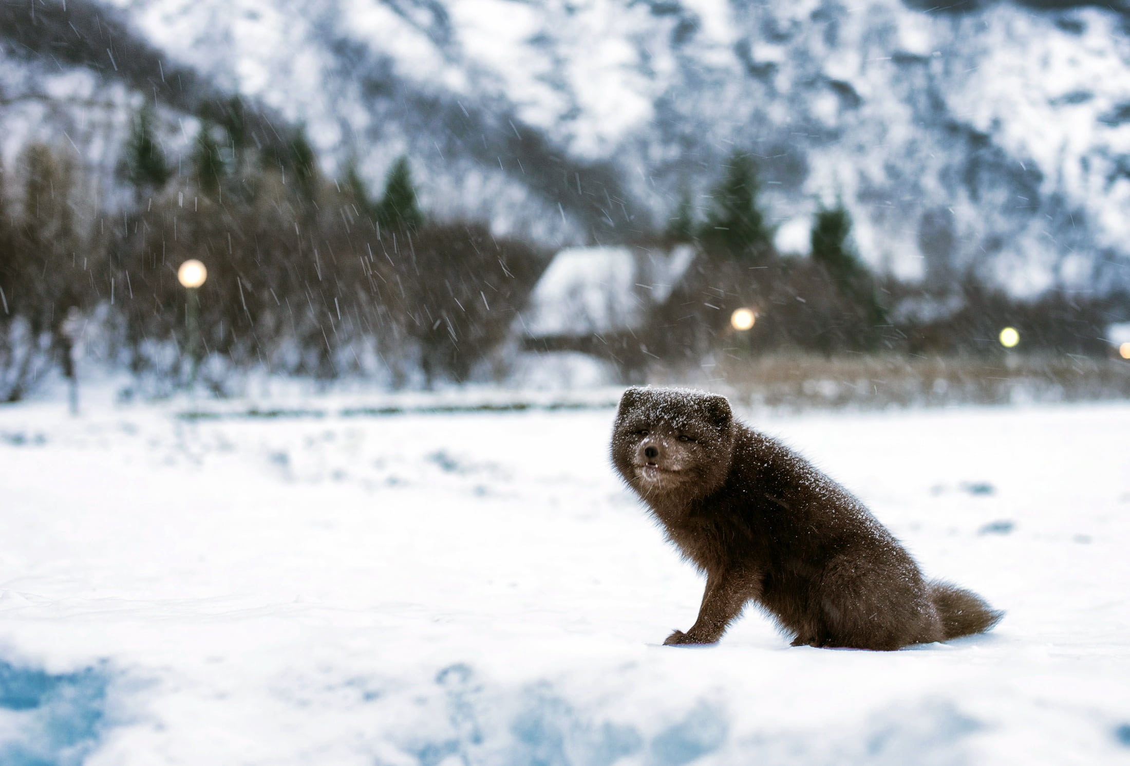 冰岛,北极狐狸,景观,冬天,雪,下雪了,天气