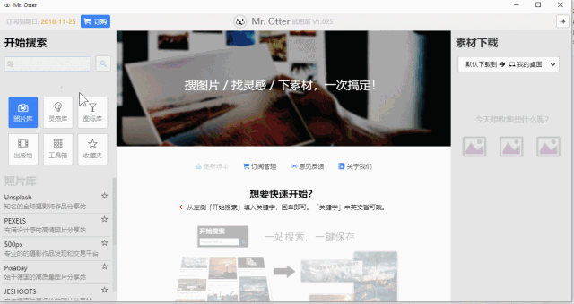 效率火箭实验室出品:MrOtter,聚合了国内外大量图片源,快速搜索和下载素材,毫不费力做好图片素材的找寻工作!