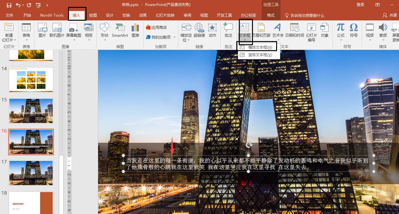 Step4:在矩形内,插入横版文本框,调整文本框的大小与位置至合适,输入文字