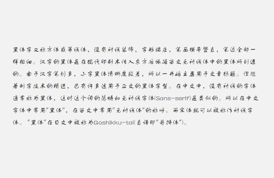 正文字体一般考虑的是用在文字较多的段落中,所以,就要求字形较为规整,笔画较为纤细,否则的话,写出来的文字段落,就会有群魔乱舞的感觉,很扎眼。