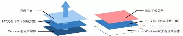 在前面我们已经说过,PowerPoint软件中可以使用各种字体只是调用了Windows系统中的字体文件。既然PowerPoint软件都只是对字体进行调用,那么只有区区数M大小的PPT文档就更是不可能包含字体文件了,它只是包含了调用字体的一个方案而已——哪些文字调用哪种字体。所以当你把PPT文档拷贝到别的电脑运行,而那台电脑又没有对应的字体的话,仅靠一个调用方案显然是不可能让字体正确显示的:
