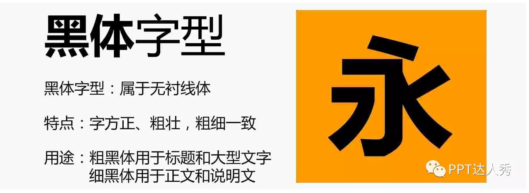 黑体字型的字体比较正式、稳重、现代感,商务性也很强,纤细的黑体又能表现女性的气质,所以黑体的适用范围很广。