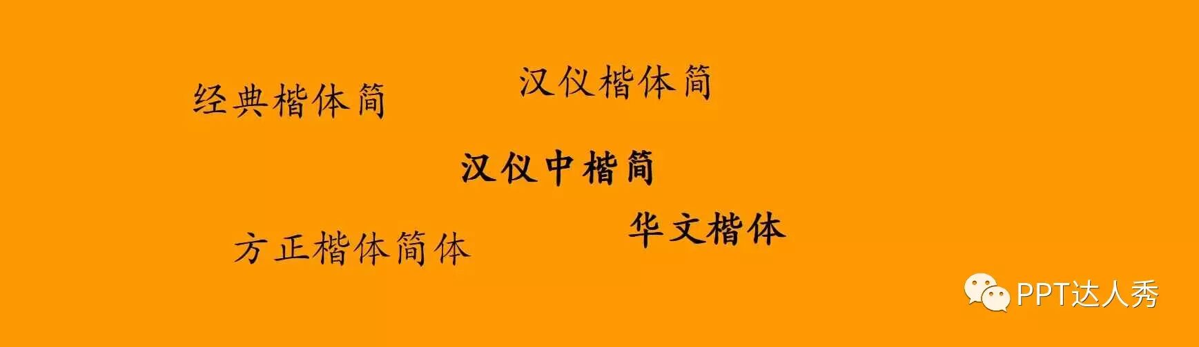 楷体包括:经典楷体简、华文楷体、汉仪楷体简、汉仪中楷简、方正楷体简体等。