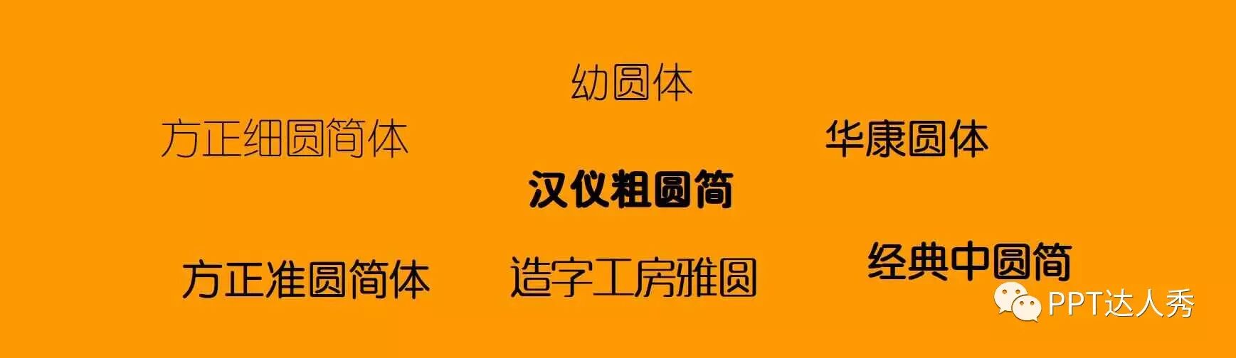圆体包括:方正细圆简体、幼圆体、华康圆体、方正准圆简体、经典中圆简 、造字工房雅圆体等。
