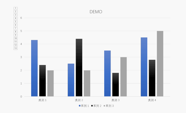原来是在PPT中插入的图表啊,这种动画在PPT中设置极其简单,虽然简单也不是所有人都知道,所以牛闪君还是决定简单分享一下操作方法,首先插入一个柱形图图表,当然从做好的Excel图表贴到PPT也是可以的。