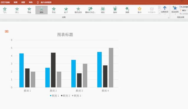 默认设置好动画,是整个图表一起擦除,这是时候,需要点击效果选项按钮,选择按系列中的元素设置动画效果。