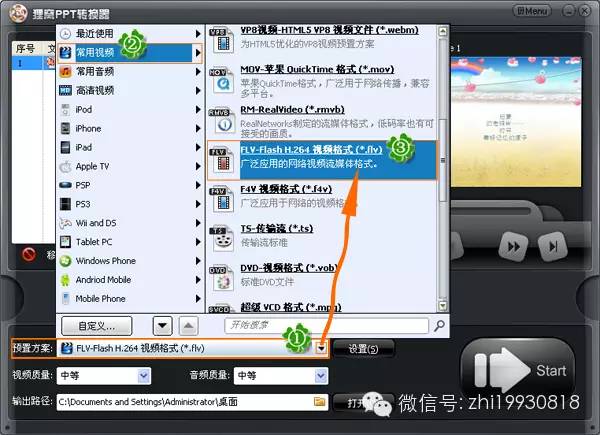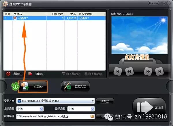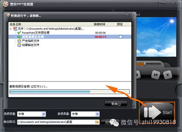最后就是PPT转换成视频了。一眼就能看到的,单击右下方的“开始start”按键。下面的工作就由PPT转换器自己搞定。