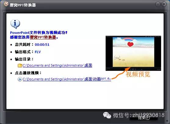 在快速的转换格式后,短短不到一分钟的时间,视频就“出炉”了。选择“输出目录”,就能看到打开文件夹中的视频文件。或“点击播放视频”,当然也能打开播放器播放视频了。