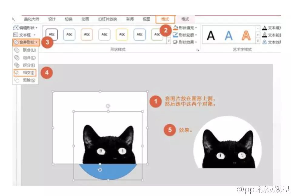 3、选中之后,单击“图片工具”中的“格式”选项卡,在选择合并形状;
